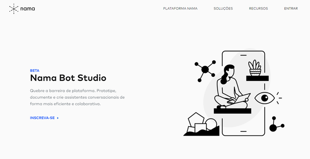 Baseado no conceito de Conversational Design System, o Nama Bot Studio (NBS) é uma ferramenta para documentação, prototipagem e implementação de conversas automatizadas, permitindo que o usuário converta o protótipo criado em código para implementação de chatbots.