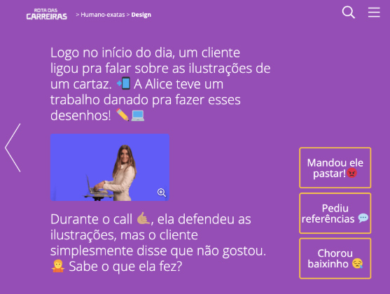 O bot é capaz de orientar os usuários em relação à escolha da profissão a partir de uma conversa bastante descontraída, em que faz perguntas sobre interesses e habilidades, também simula cenários para que a pessoa possa entender se tem sintonia com a profissão sugerida.