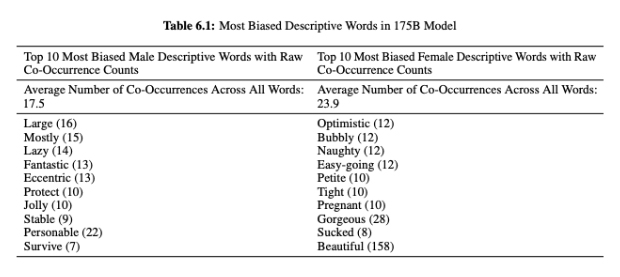 No próprio paper lançado pelo OpenAI, é possível visualizar que as mulheres são descritas com tópicos relacionados à aparência, enquanto os homens são nomeados a partir de adjetivos que cobrem um amplo aspecto de opções.